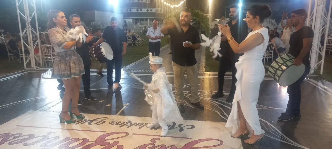Sünnet töreni düş bahçesi kır düğün salonunda küçük beyin salona alkışlar la girmesiyle başladı çok kalabalık davetli topluluğunun katılımıyla gerçekleşen tören de sahne bir dakika boş kalmadı halayların çekildiği oyunların oynandığı sünnet töreni gecenin geç saatlerine kadar devam etti